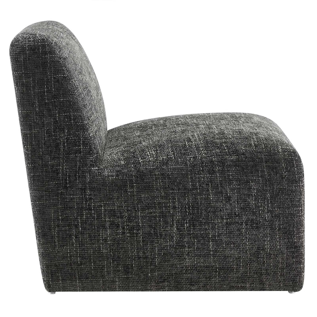 Discover the Amita Accent Lounge Chair, where modern style meets supreme comfort. This armless accent chair features a sleek, tailored design with rounded edges and an oversized profile, perfect for any contemporary setting. The dense foam padding and luxurious chenille upholstery on this living room chair provide a plush, inviting seat. Built on a solid wood frame with a zigzag spring support system, the Amita reading chair ensures both comfort and durability. Whether used as a cozy corner chair in your reading nook or as a stylish armless lounge chair, its wide chair design offers a cushy seating solution for enhancing living rooms, reception areas, bedrooms, or lounge room decors. It includes non-marking foot glides to protect flooring and ships fully assembled. Weight Capacity: 331 lbs.
