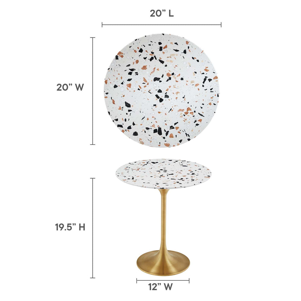 Reflecting a seamless organic shape and timeless form, the Lippa Side Table has become a symbol of modernism for over the past 60 years. Before its release, homes were filled with clunky remnants of an industrial age long gone by. But in order to advance into the new world, homes first had to transition from the traditional square table, into a piece that connoted progress. The base and dimensions are true to the original specifications, while the table’s round terrazzo top rests on a brushed gold stainless steel tapered pedestal base.