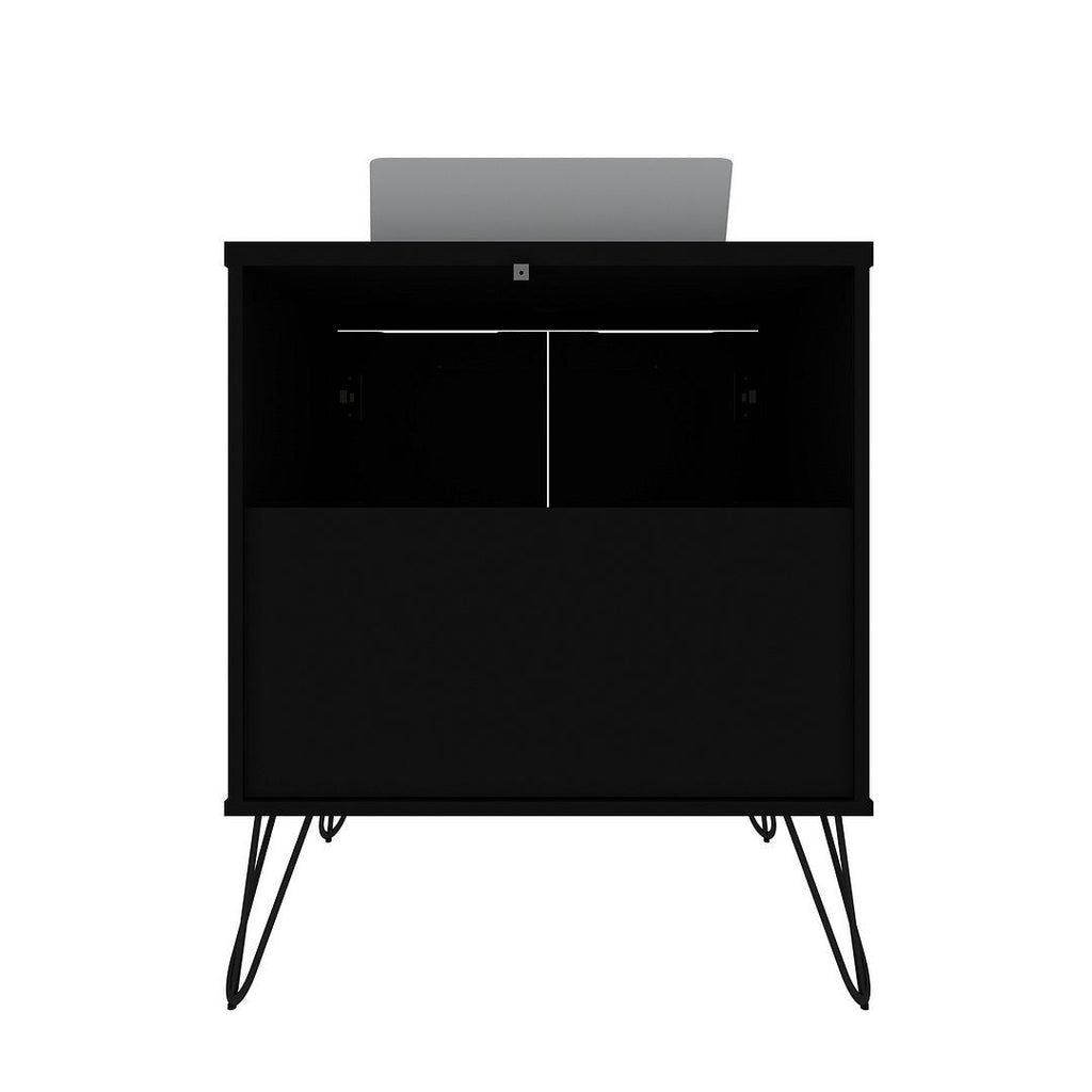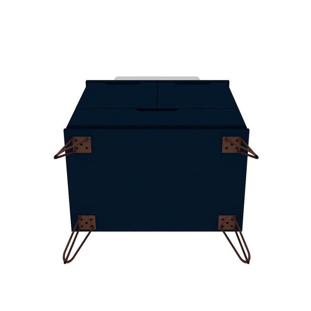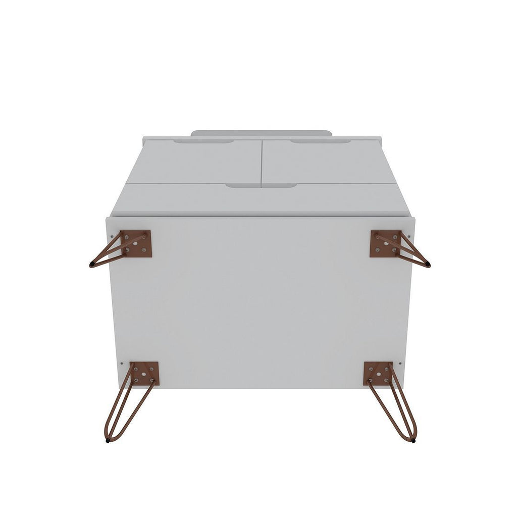 Refresh your bathroom or powder room space with the Rockefeller vanity that offers storage and style all at once. Beautiful splayed metal legs and detailed cut-out cabinet doors are seamless and versatile, easily blending with any interior design. Cabinet doors conceal shelving space to help arrange personal items, cleaning supplies, and more, also include a lower drawer for extra storage.