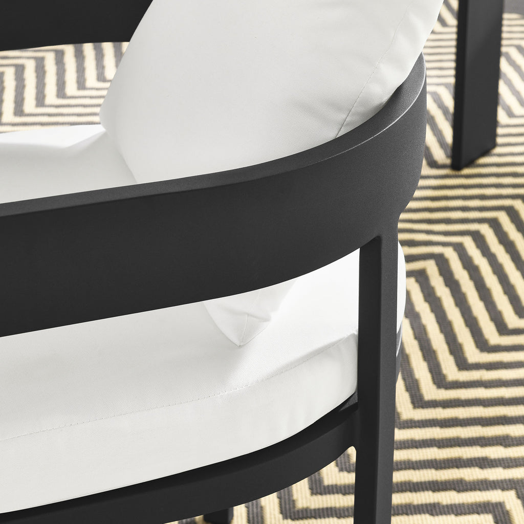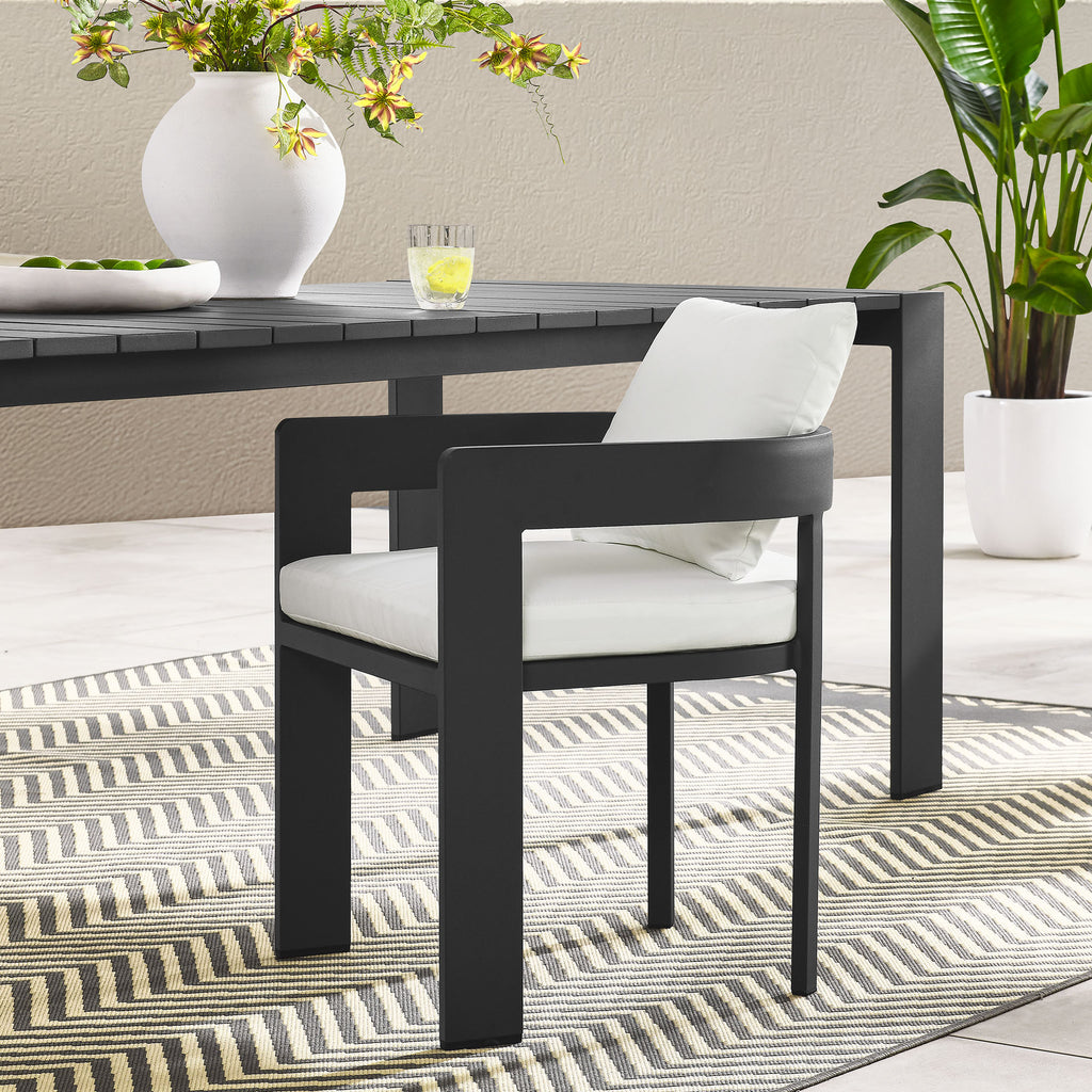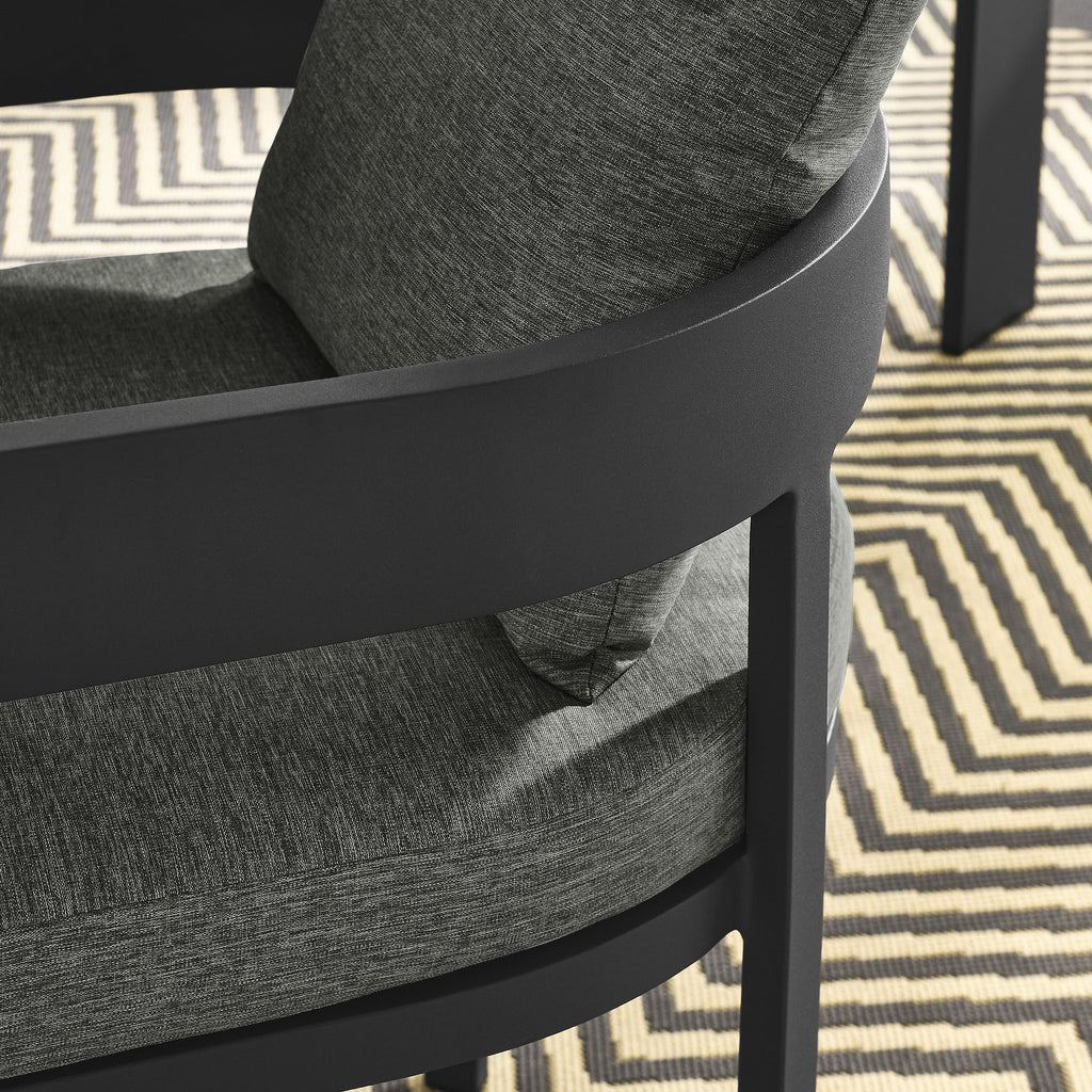 Enliven your alfresco spaces with the Tahoe Aluminum Outdoor Patio Dining Chair. This modern outdoor backyard chair is constructed with well-crafted, durable powder-coated aluminum, dispensing contemporary elegance in your outdoor dining spaces. Featuring a stylish curved back, the Tahoe Aluminum Patio Chair is designed with removable, stain-resistant cushions filled with dense foam padding and covered in sunproof, water-resistant fabric. Whether paired with one of the Tahoe outdoor dining tables or used with other patio tables, this curved open back dining chair is low maintenance and high performing, providing a perfect spot to savor morning coffee or enjoy evening dinners. Equipped with non-marking foot glides to protect your deck or patio floor, the Tahoe Patio Accent Chair comes fully assembled. Weight Capacity: 300 lbs.